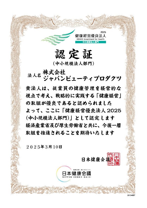 当社は、2025年3月10日付で、経済産業省と日本健康会議より、「健康経営優良法人2025(中小規模法人部門)」に認定されました。